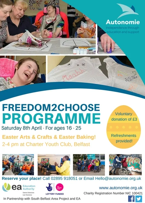 With the Easter Holidays only a hop, skip and a jump away we are delighted to announce that on Saturday 8th of April we have a cracking Freedom2Choose with something for everyone! There will be an Easter Arts & Crafts Workshop as well as an Easter Baking Class and lots more in store.
