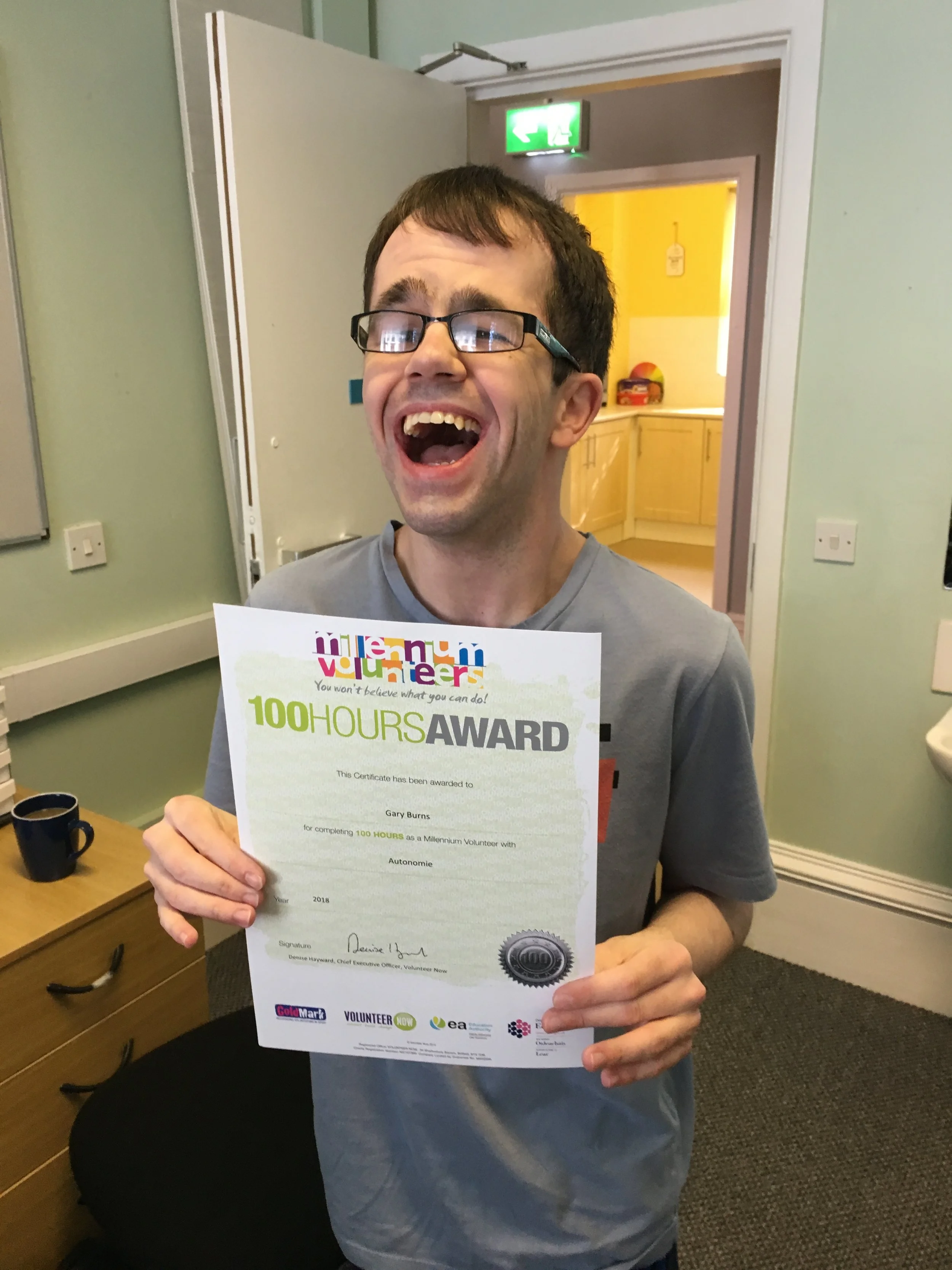 Gary Burns has successfully reached 100 hours volunteering at Autonomie as part of Millennium Volunteers programme!