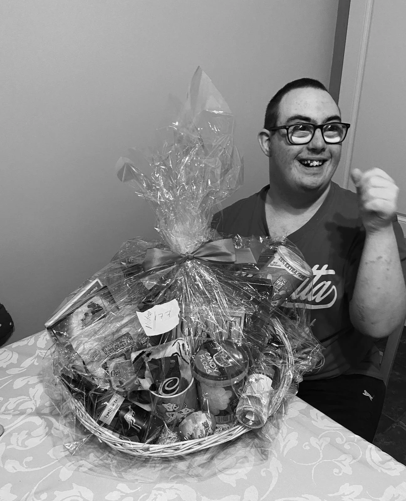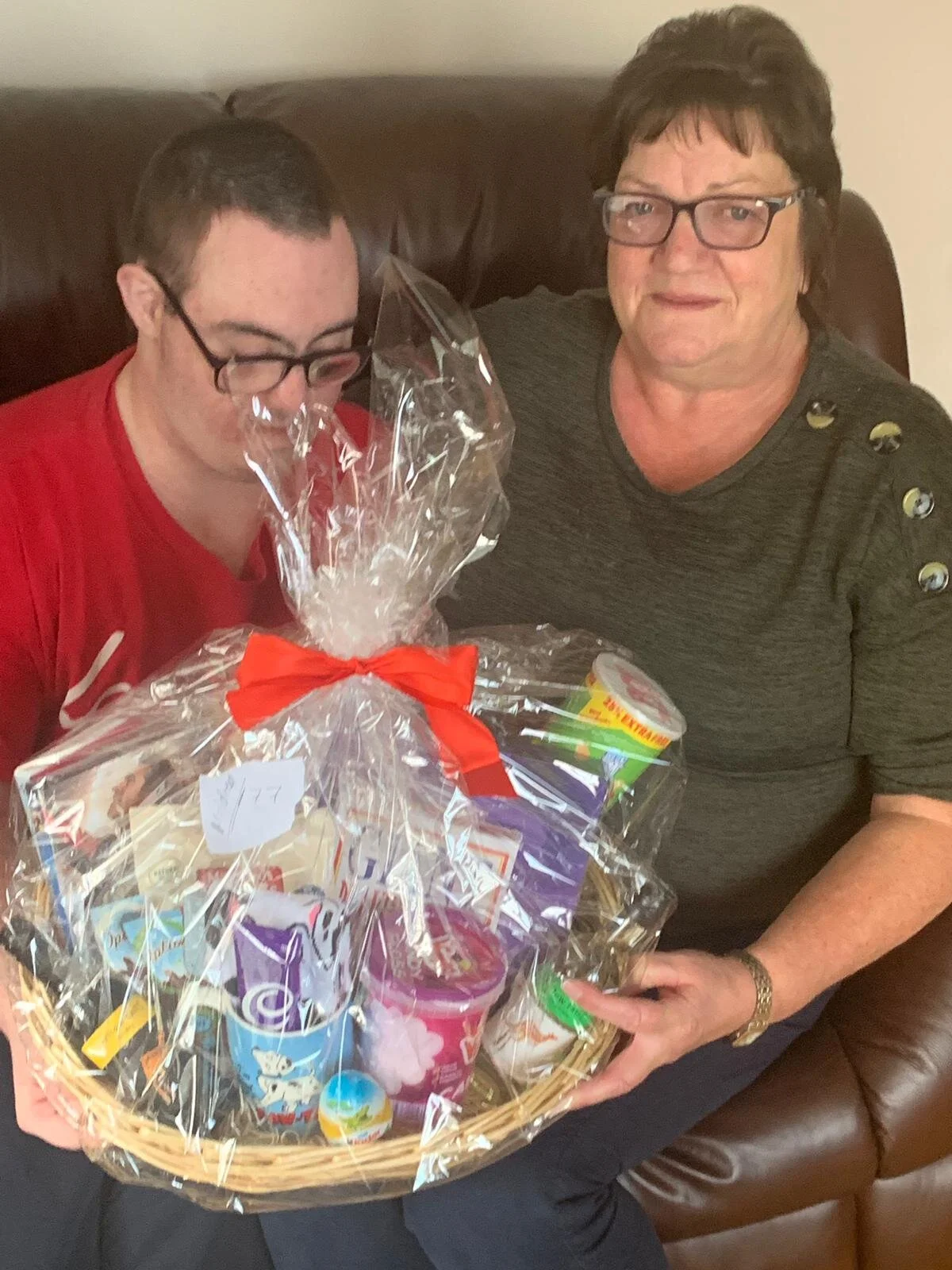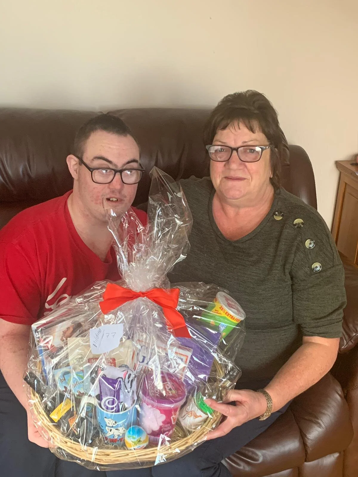 Andrew and his mum who won our Disney Quiz Raffle on Friday 25 September 202 and were recently presented with a 'Family Night In' hamper.