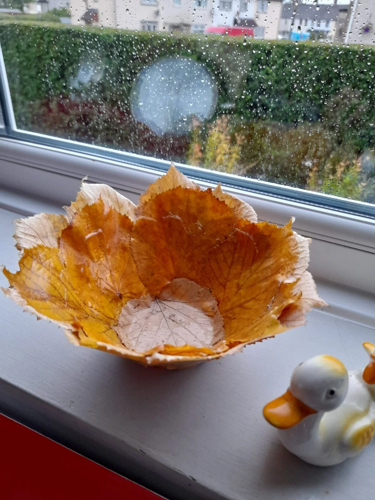 • Chosen same kind of autumn leaves or any type of colourful leaves from a nature walk (dry flat but not crisp)
